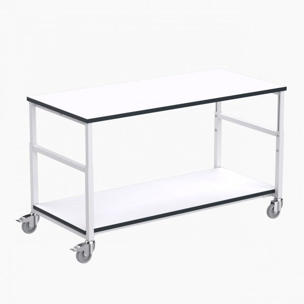 Carrello ESD Swift 715 1500x700 mm con due ripiani, altezza regolabile, 4 ruote girevoli in gomma e capacità di carico 150 kg
